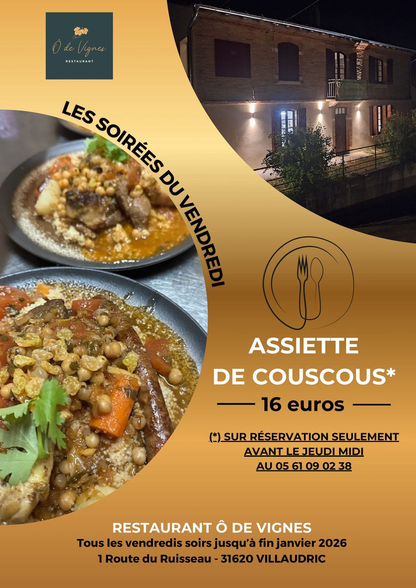Jusqu'à la fin du mois de janvier, dégustez une assiette de couscous sur réservation au 05 61 09 02 38